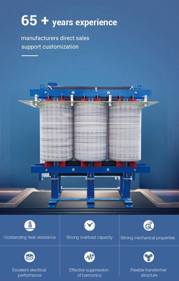 | ZT(P)SFG-100 | 100 – 500 | До 35 кВ / 0,4–6 кВ | Сухое охлаждение | ≤ 65 | Малые лабораторные и производственные линии |